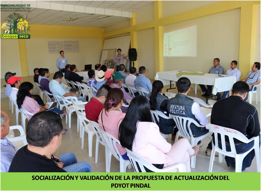 Conforme a lo establecido en el proceso de actualización de los Planes de Desarrollo y Ordenamiento Territorial que la Mancomunidad Bosque Seco junto a sus Municipalidades está realizando, en esta oportunidad el día 27 y 28 de noviembre en la ciudad de Catacocha, Zapotillo y Pindal, se realizó la Validación y Socialización de la propuesta de actualización del Plan de Desarrollo y Ordenamiento Territorial.